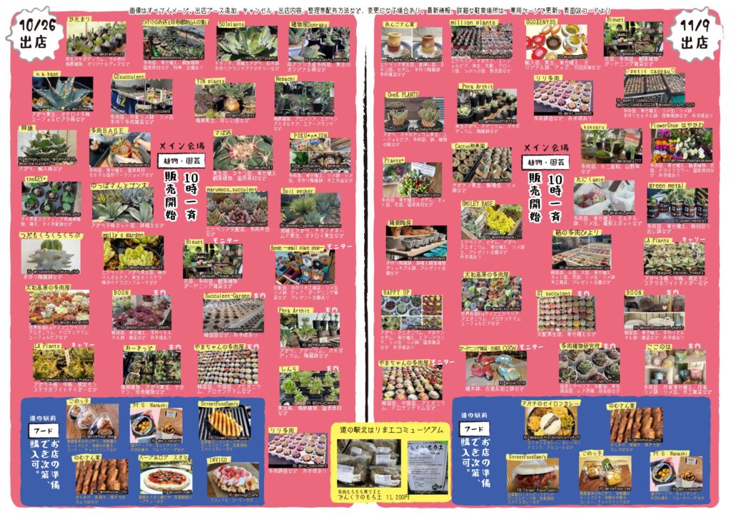 もっと鮮明なPDF版データ→多肉もろもろ市場チラシ表(駐車場など)・多肉もろもろ市場チラシ中(出店一覧)