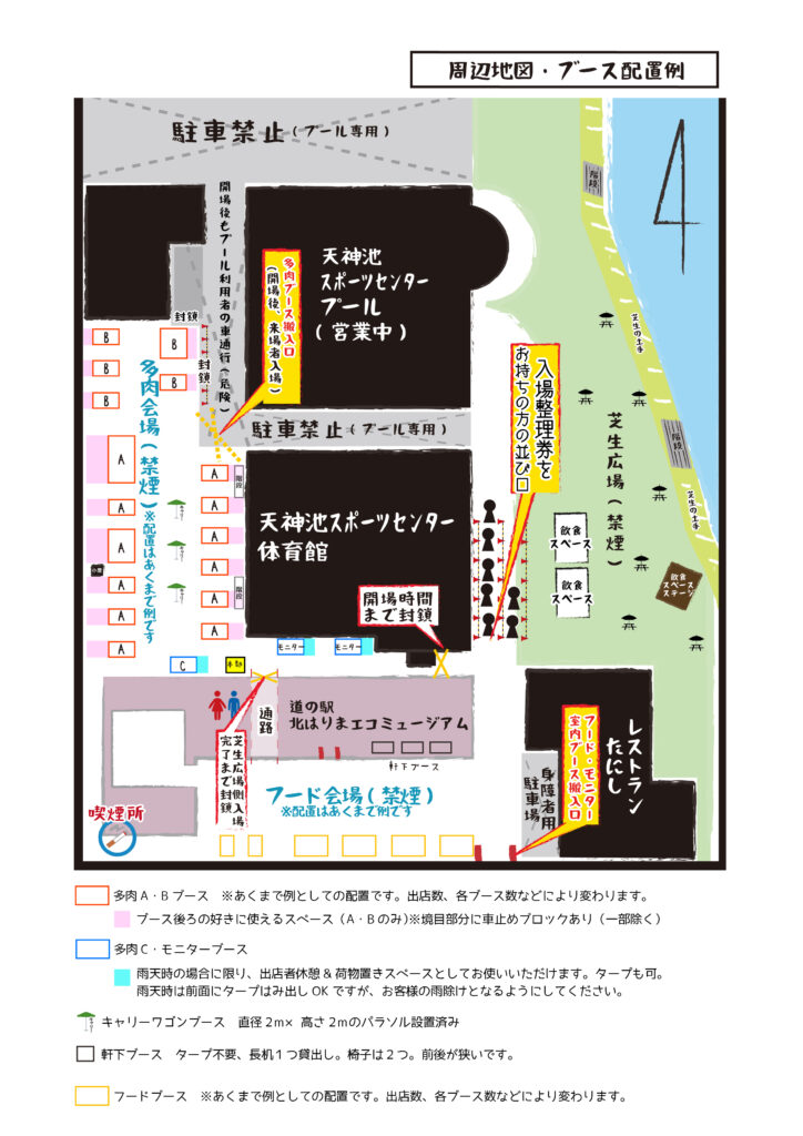 ⑨その他、出店者駐車場や搬入時間など一般ブースと同じとなります。