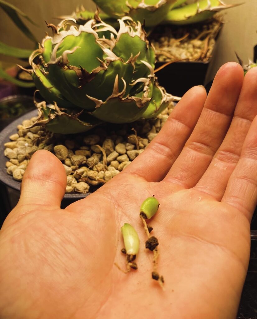 【自己紹介文】 アガベ、塊根植物の実生をしています。出店時は小さい苗から現地球までお持ちします