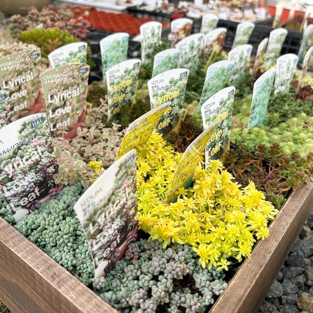 【自己紹介文】 エケベリアやセダムを中心に多数ご用意しています!初心者さんも育てやすい苗もご用意してるので、お気軽にご相談くださいね◎また、大人気のミニ寄植えは鉢単体の販売もしているのでオススメです!鉢の種類も多いのでお気に入りをみつけてください。寄植えに使える土や鉢だけでなく、オリジナルのリメ鉢もありますのでぜひ見て来てください。インスタで苗や鉢の紹介もしますので、覗いてみてください。