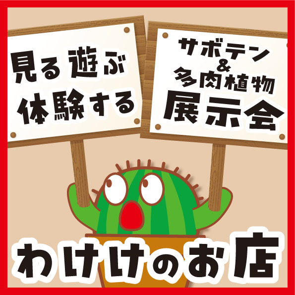 【自己紹介文】 押忍‼️‼️‼️‼️‼️‼️今回は(´∀`) な、なんと❗ もろもろ市場にて、多肉植物&サボテンのミニ展示会を行います(´ω`*)買う・見る・遊ぶ・体験する この中の、買うは他の素敵な出店者様にお任せして(´ω`)(任せた‼️ヮ(゚д゚)ォ!) 見る・わけけが育て上げたサボテン&多肉植物🔥遊ぶ・遊び感覚で楽しめて多肉植物をゲット💥体験する・わけけのお店だから出来る、新感覚のワークショップ💪此方の3要素を、ファンタスティックに提供しまっせぇぇぇぇぇ‼️◇遊ぶ・体験するは有料🈶です◇そして今回も、有料🈶パートでの売り上げの一部はもろもろ市場運営様に寄付させて頂きますヮ(゚д゚)ォ!☆17日のわけけのお店は通常販売は行いませんのでご注意下さい☆更に、育て方や管理のコツ等の多肉植物関連の無料相談も随時行いますので(-д☆)キラッお楽しみにぃぃぃぃぃ🔥