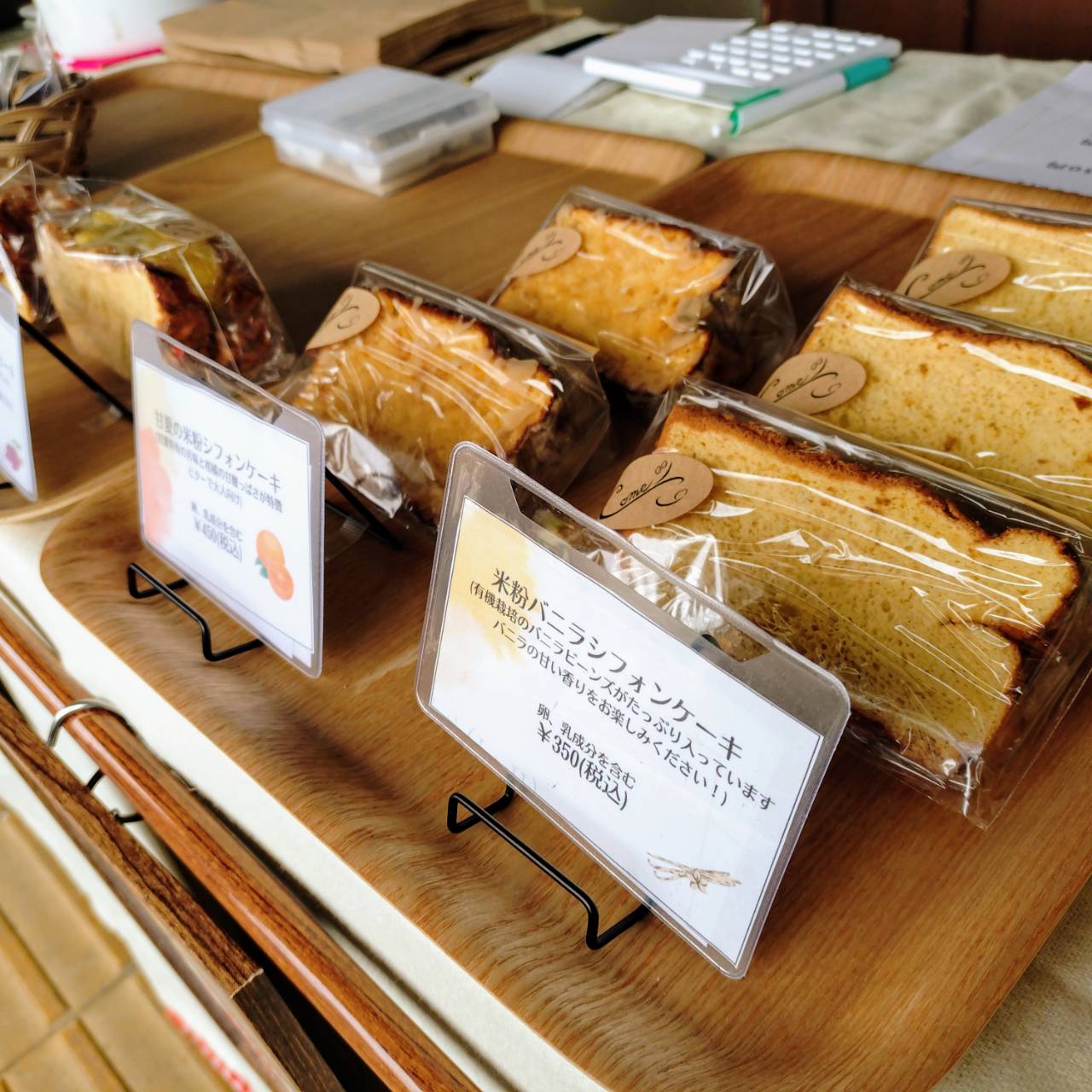 【出店内容】 米粉シフォンケーキ、ドリンク、米粉の多肉型クッキーなど