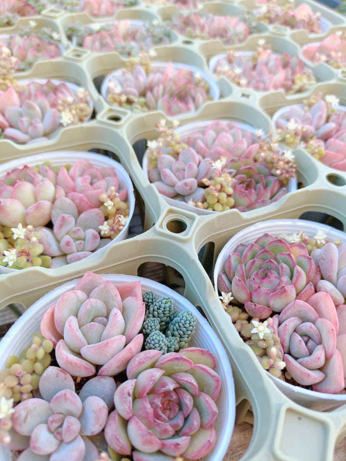 【自己紹介文】 エケベリア、セダムなどを中心に、気持ちを込めて育てた子たちをお持ちします。交配、実生苗も少しずつ増えてきました。多肉ライフのお手伝いができますように!お待ちしています。